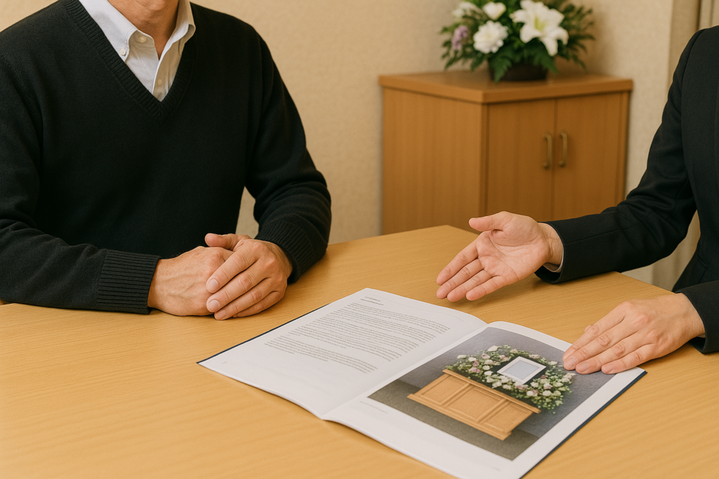 葬儀担当者と打ち合わせを行います。